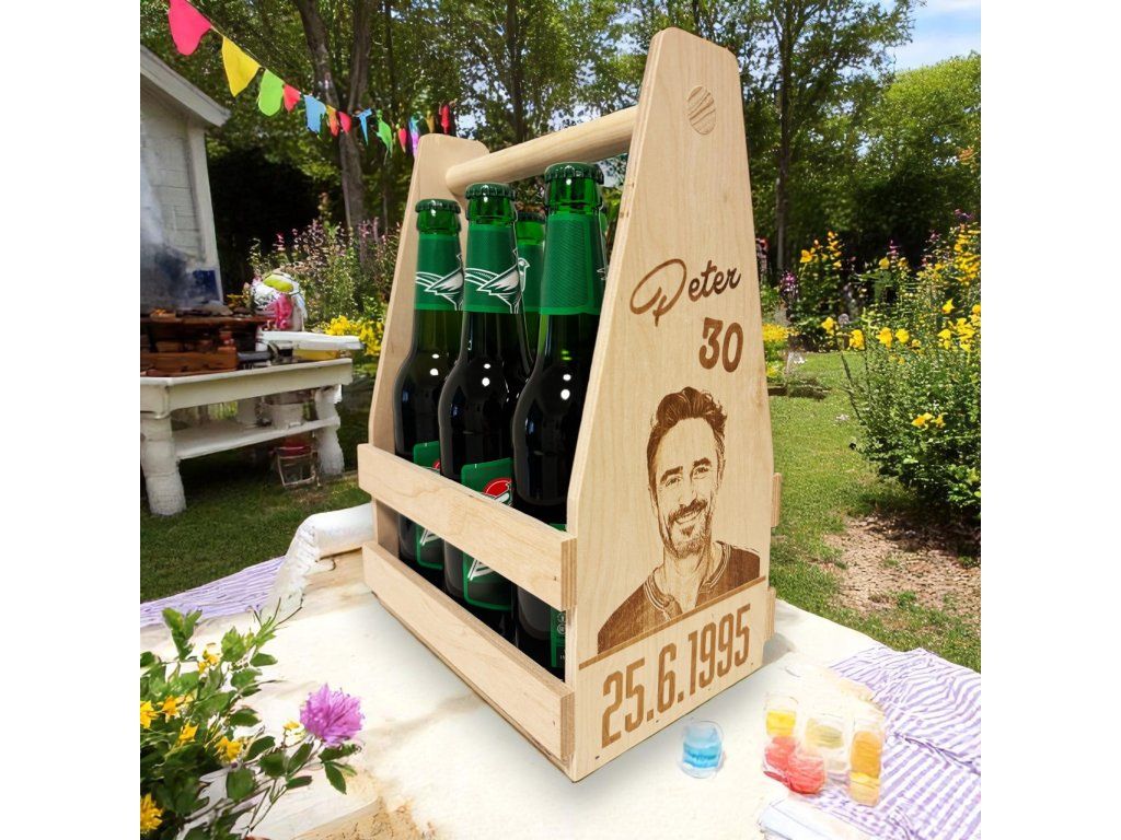 Hledáte originální dárek pro muže, kamaráda, otce nebo kolegu? Tato stylová dřevěná přepravka na pivo je skvělou volbou! Vyrobená z kvalitního dřeva a doplněná o jedinečné laserové gravírování podle vašeho přání – jméno, věk, datum, portrét či vtipné věnování – každý kus je originál.