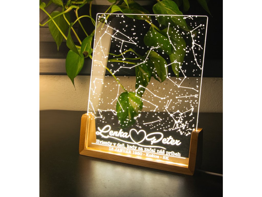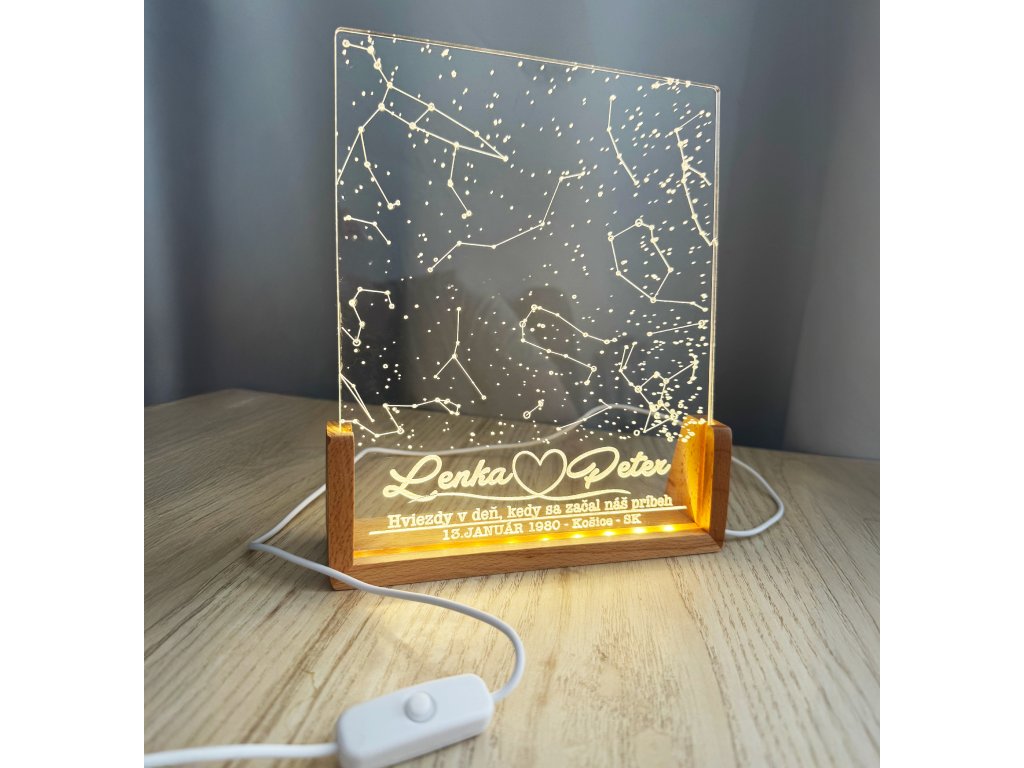 Personalizovaná LED lampa – Hvězdná mapa se jmény a textem