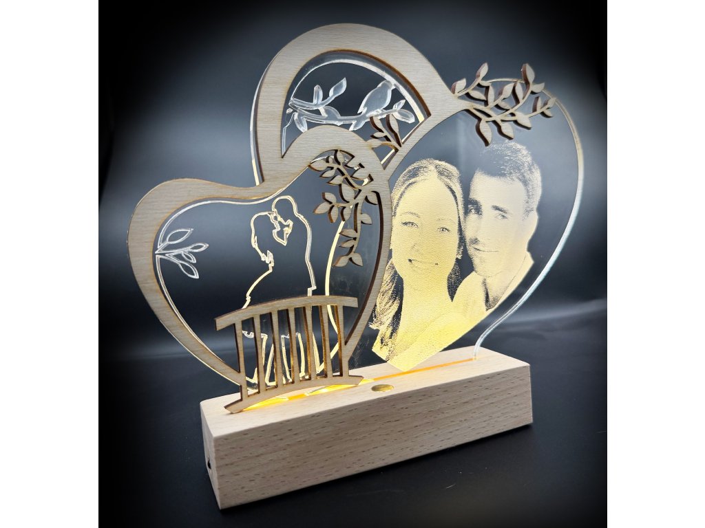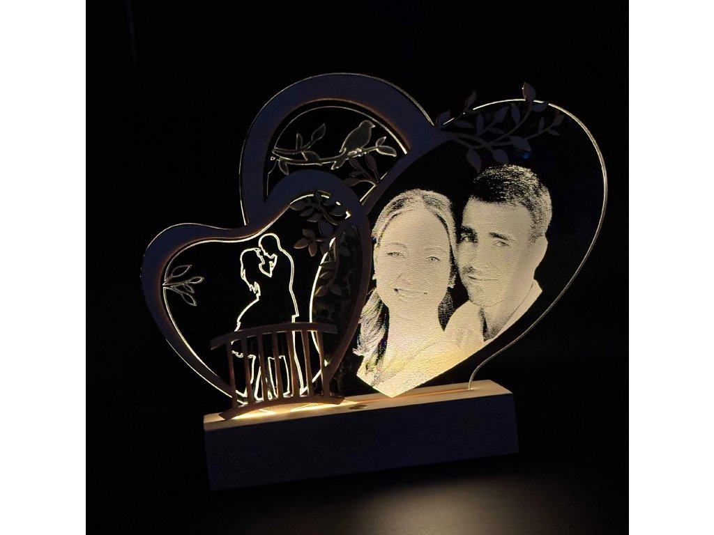 Personalizovaná LED lampa pro páry s fotografií – dvojité srdce